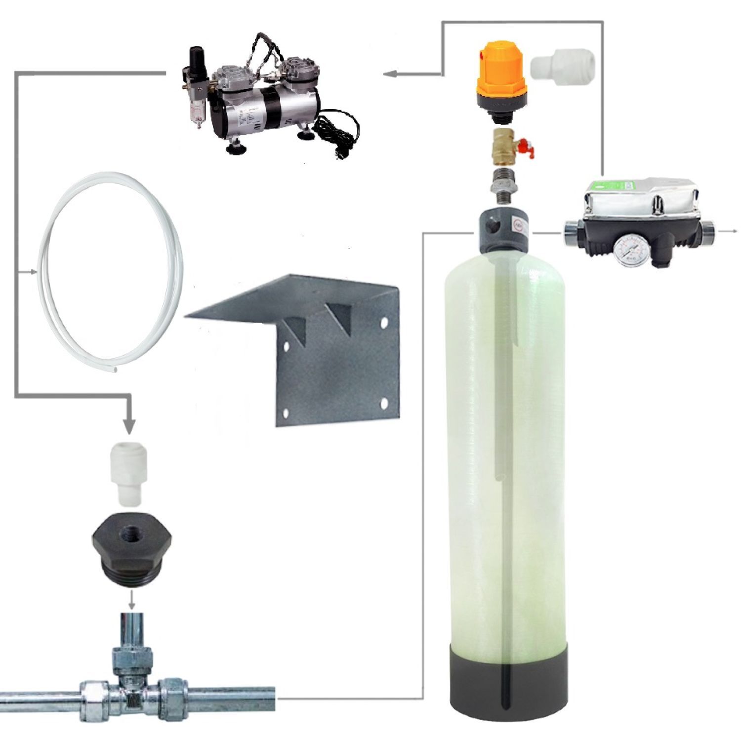 Напорная аэрация подразумевает отсутствие потери давления в трубопроводе. При напорной аэрации воды воздух при помощи компрессора или эжектора подается в трубопровод. Далее водо-воздушная смесь подается в контактную камеру: напорный корпус или на статический миксер, обеспечивающий необходимое время контакта. Из контактной камеры вода поступает на систему фильтрации практически без потери исходного давления. При использовании напорной аэрации воды в верхней части контактной камеры устанавливают воздухосбросный клапан для удаления лишнего воздуха и удаленных из воды газов. Контактная камера, распределительный оголовок с трубками и восдухосбросный клапан в сборе называются аэрационной колонной. Brio 2000 – аппаратура, позволяющая автоматизировать пуск и останов электронасоса в зависимости от понижения давления (открытие кранов) и от остановки потока в системе (закрытие кранов), на которой она установлена. Brio 2000 M выполняет важную функцию останова насоса при отсутствии воды, защищая его от вредной работы в су