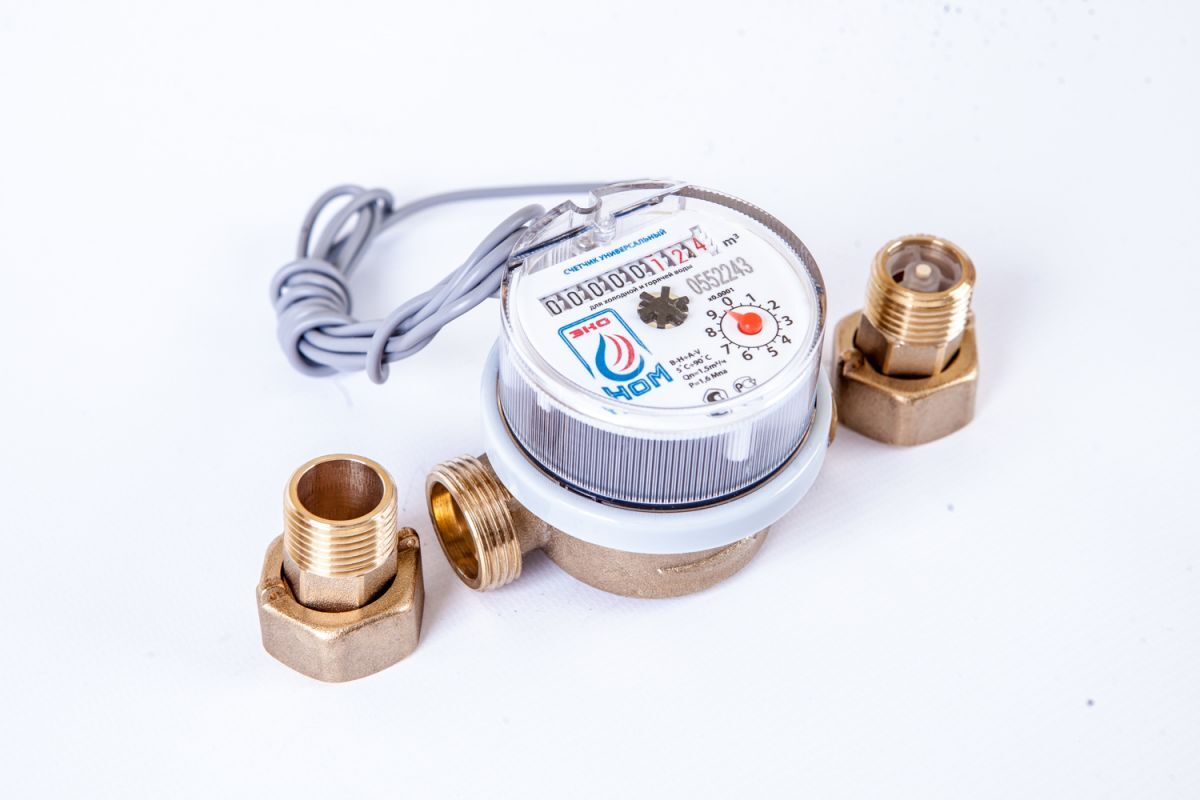 Водосчетчик ЭКО НОМ DN15 СВ 15-80 ДГ +КМЧ с обр. клапаном (10л/имп) в сборе